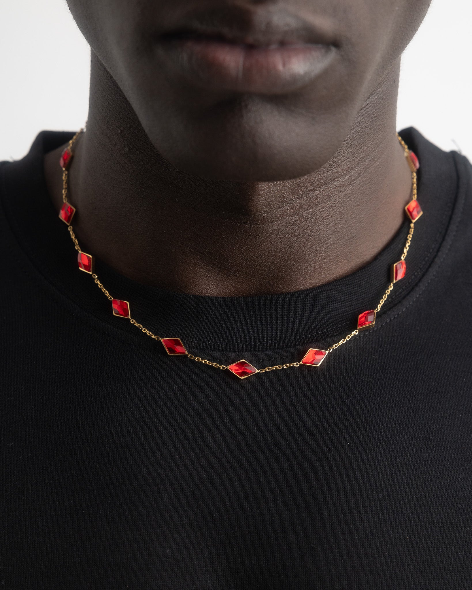 18K Gold plated Stainless Steel and red cubic zirconia