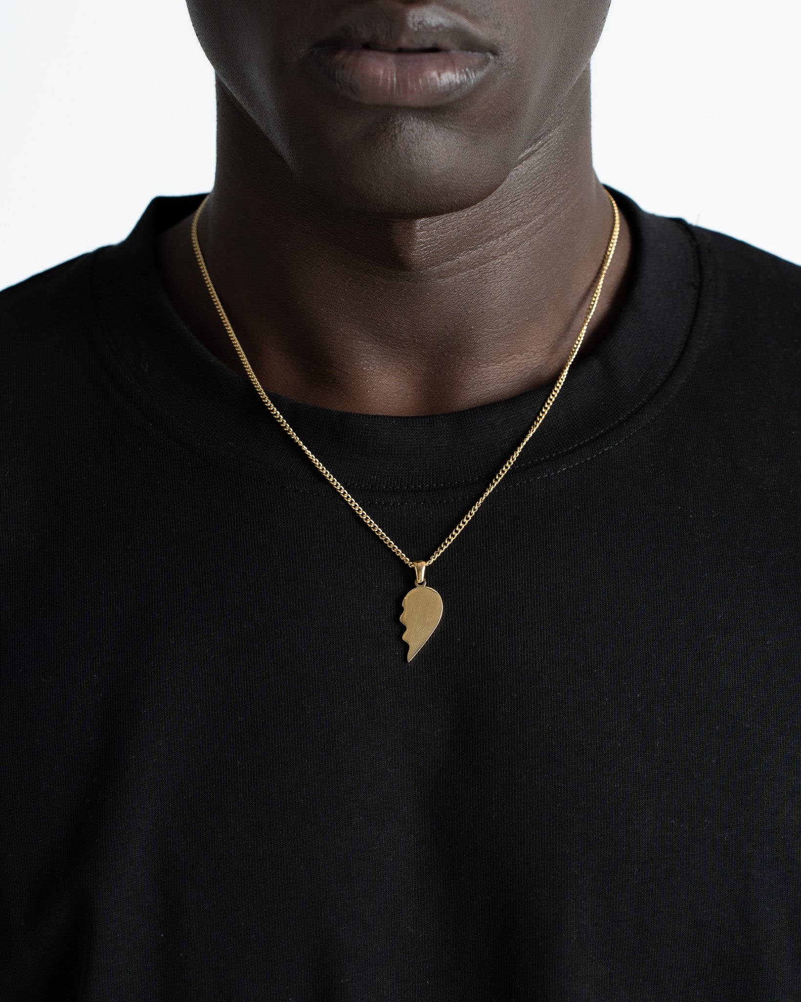 Collar con colgante en forma de medio corazón.