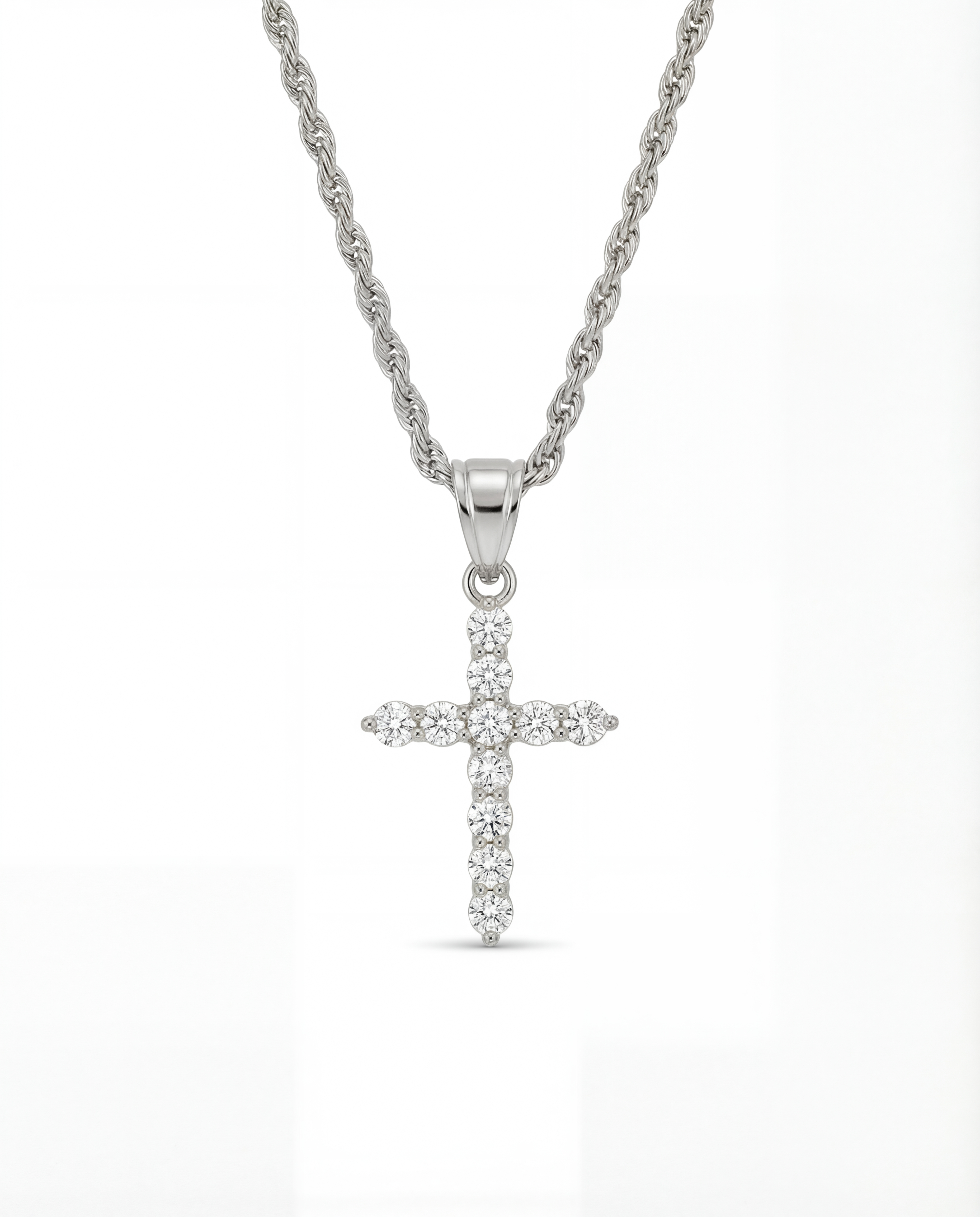 Radiant cross with zircon crystals. Timeless brilliance.